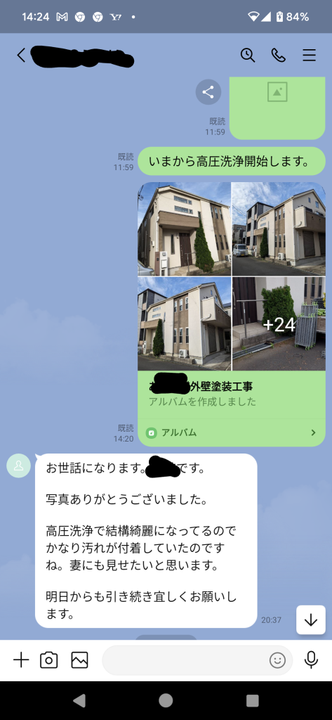 塗装する部分を高圧洗浄機で洗浄していきます。
